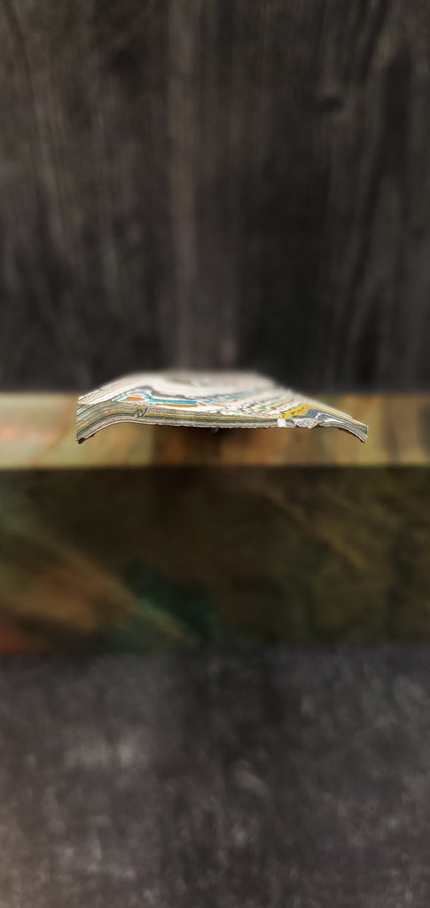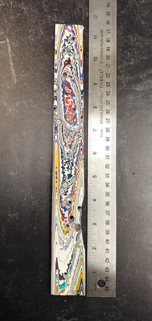 Highly Figured, Extremely Rare, Kenworth Fordite Rail Slab, Raw & Rough Sanded as shown in pictures. Kenworth has the most unique colors of all the fordite types making it great for use in Knife handles, Jewelry, Cabochons, Worrystones and so much more.