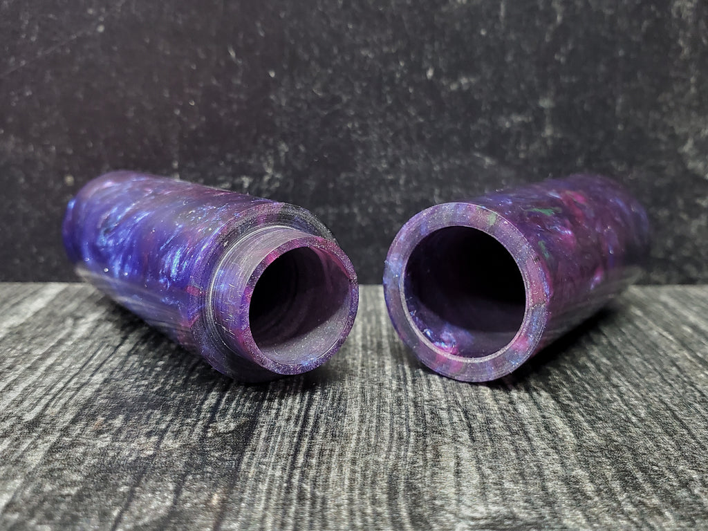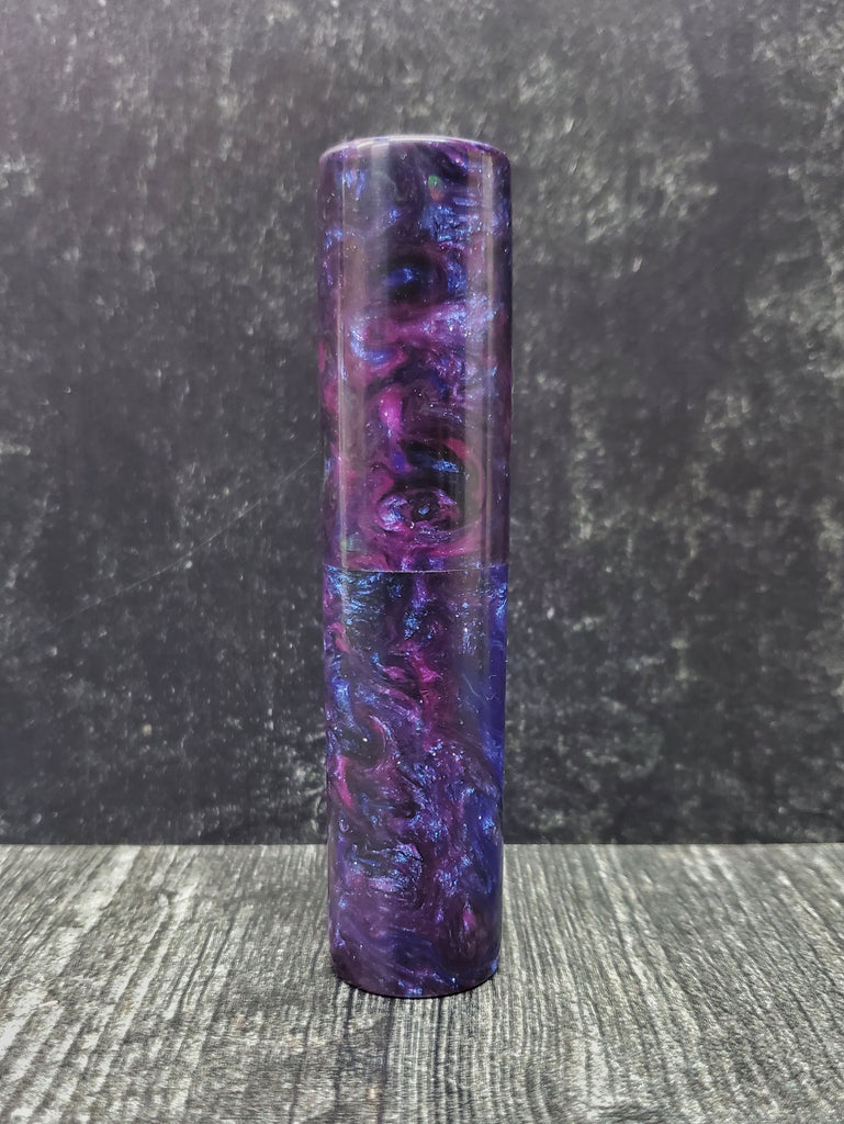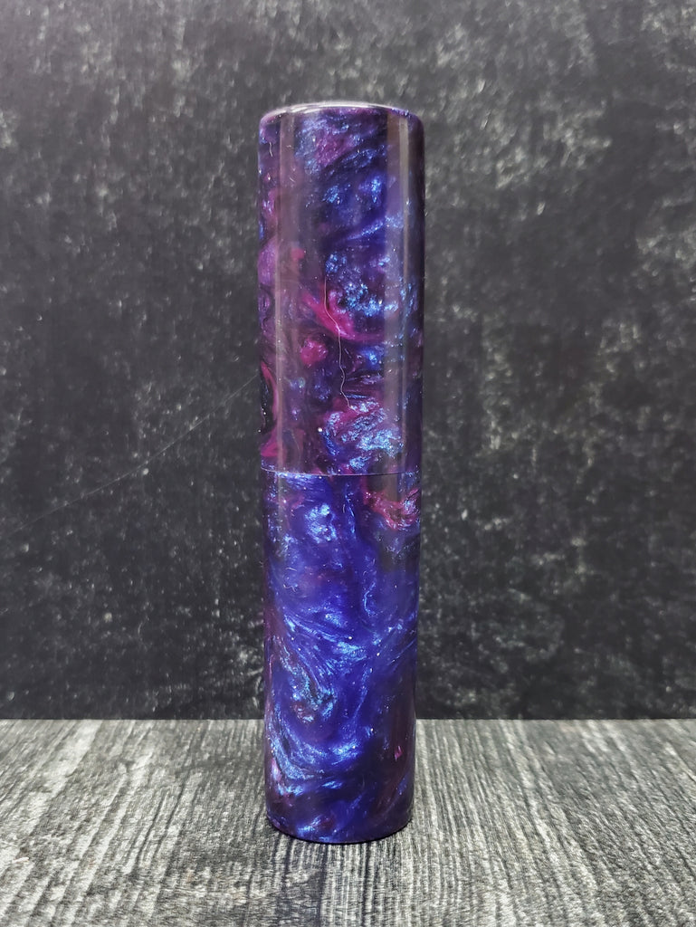 This lidded box was hand-turned by Mike Navarre of OutCastBlanks. The outside measurements are 4.4 inches tall by 1 inches in diameter. The inside is 0.63 inches in diameter and 4.1 inches in long. This is a small box that would be great to carry small items like vitamins or toothpicks. The lid fits securely so it's great to toss in a bag or purse.
